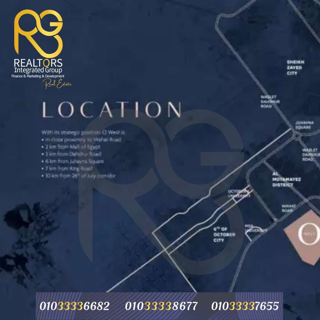 موقع مميز داخل كمبوند أو ويست في مكان حيوي قريب من جميع الخدمات